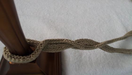 Het touw wordt vastgezet door het uiteinde door drie opeenvolgende "ogen" in het touw door te voeren.